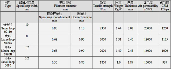 聚酯螺旋干網(wǎng)常見規(guī)格: